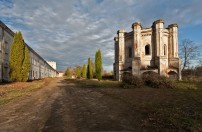listopad 2012 , Wieża wodna na dziedzińcu koszar. Mieliśmy fart, bo słonko na chwilę wyjrzało, poza tym teren niedawno został odchaszczony. Wycięto wiele samosiejek, które zupełnie zasłaniały budynki.Skomentuj zdjęcie