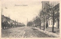 1916 , Niemieckie tabory wojskowe ciągnące ul. Kościuszki. Po prawej kościół ewangelicki.Skomentuj zdjęcie |