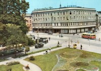 1967 , Opole. Biurowiec Europa i skwer na którym stoi dziś pomnik Bojowników o Polskość Śląska Opolskiego. |