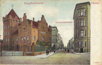 Komenda Wojewódzka Państwowej Straży Pożarnej więcej zdjęć (8) Zbudowano: 1901-1903 Zabytek: A/673 z 15.01.1996; A/87 z 04.08.2004 Budynek został zaprojektowany w 1899 roku, a jego autorstwo przypisywane jest miejskiemu radcy budowlanemu, Brunonowi Gauerowi. Wzniesiono go w latach 1901–1903 i przeznaczono na siedzibę Miejskiej Straży Ogniowej (Hauptfeuerwache), którą przeniesiono z Ratusza Staromiejskiego. W 1912 roku do wschodniej ściany budynku dobudowano niski pawilon warsztatowy, a w sześć lat później przejęto dawną wozownię artyleryjską. Położenie budynku nie jest przypadkowe, wpisuje się ono bowiem w ówczesny plan urbanistyczny miasta, który zakładał zabudowę pasa fortecznego wzdłuż dzisiejszej ulicy Wały gen. Sikorskiego budynkami użyteczności publicznej, o charakterze reprezentacyjnym. Od lat 80. XX wieku, po wzniesieniu remizy strażackiej przy ul. Legionów, obiekt pełni tylko rolę administracyjną. Od 1975 roku ma tu siedzibę Komenda Wojewódzka PSP. W 1996 roku budynek został wpisany do rejestru zabytków. Budynek powstał w stylu historyzującym. Jego charakterystycznym elementem jest górująca nad całością masywna, czterokondygnacyjna wieża, zwieńczona gzymsem machikułowym. ul. Prosta więcej zdjęć (103) Dawniej: Gerechtstr |