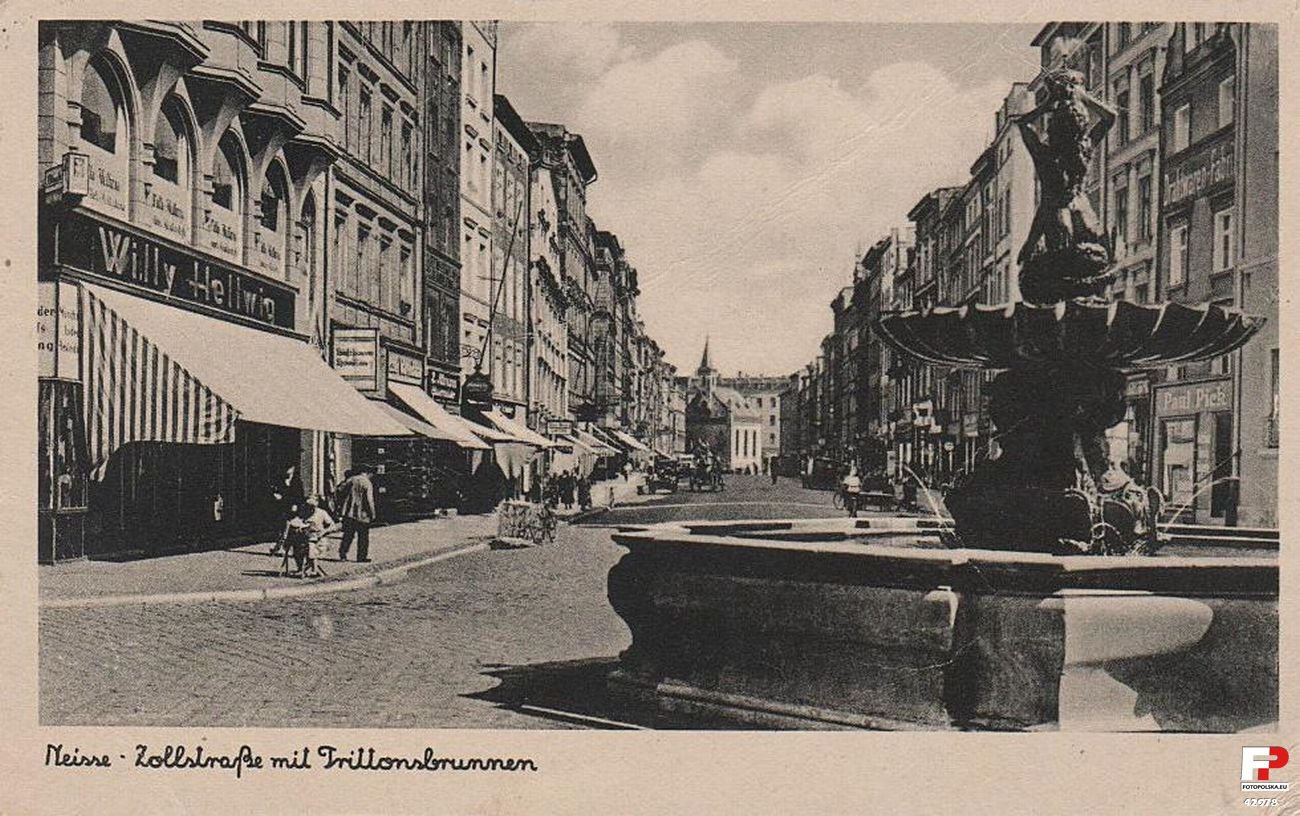 Fontanna Trytona więcej zdjęć (100) Zbudowano: 1700-1701 Dawniej: Tritonsbrunnen Fontanna Trytona została wzniesiona w latach 1700-1701. To wspaniałe dzieło dojrzałego baroku zostało wykonane ze sławniowickiego marmuru. Jej pierwowzorem była rzymska Fontanna del Tritone (wykonana około 1637r. przez Giowanniego Lorenzo Berniniego dla papieża Urbana VIII Berberiniego, usytuowana na Placu Berberini). Starożytni Rzymianie na frontonach wielu budowli umieszczali napis S.P.Q.R. (skrót formuły "Senatus Populusque Romanus" co tłumaczymy jako "senat i lud rzymski"). Nysanie byli dumni z projektu fontanny i dlatego też wzorem Rzymian nad herbem miasta wyryć kazali inskrypcję S.P.Q.N. ("Senatus Populusque Nissiensis" co tłumaczymy jako "senat i lud nyski"). Ze wszystkich zabytków ta fontanna najbardziej uzasadnia nadany niegdyś Nysie przydomek "Śląski Rzym" i chyba właśnie ona zdecydowała o wyborze tego właśnie przydomka. źródło : Celna 5 więcej zdjęć (3) Celna 3 więcej zdjęć (4) Celna 7 więcej zdjęć (2) Celna 9 więcej zdjęć (2) ul. Bracka więcej zdjęć (466) Dawniej: Brüderstrasse ul. Celna więcej zdjęć (187) Dawniej: Zollstrasse, Wery Kostrzewy |