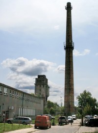 lipiec 2013 , Pozostałości po nowej gazowni, komin i wieża węglowa.Skomentuj zdjęcie