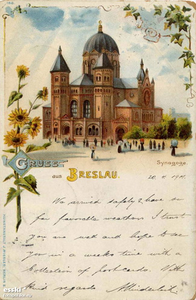 Nowa Synagoga więcej zdjęć (68) Zbudowano: 1865-1872 Zlikwidowano: 1938 Dawniej: Neue Synagoge Świątynia została spalona podczas "nocy kryształowej" z 9 na 10 listopada 1938 roku. teren ogrodzono i rozbiórkę resztek sfinalizowano w maju 1939 r. ul. Łąkowa więcej zdjęć (255) Dawniej: Angerstraße Do roku 1907 nazwa ulicy brzmiała "Am Anger" - Na Łące. 14 kwietnia 1933 ówczesny prezydent policji Obergruppenführer SA Edmund Heines nadał ulicy nazwę własnego imienia - Edmund-Heines-Straße. W grudniu 1934 r. przywrócono poprzednią nazwę. |