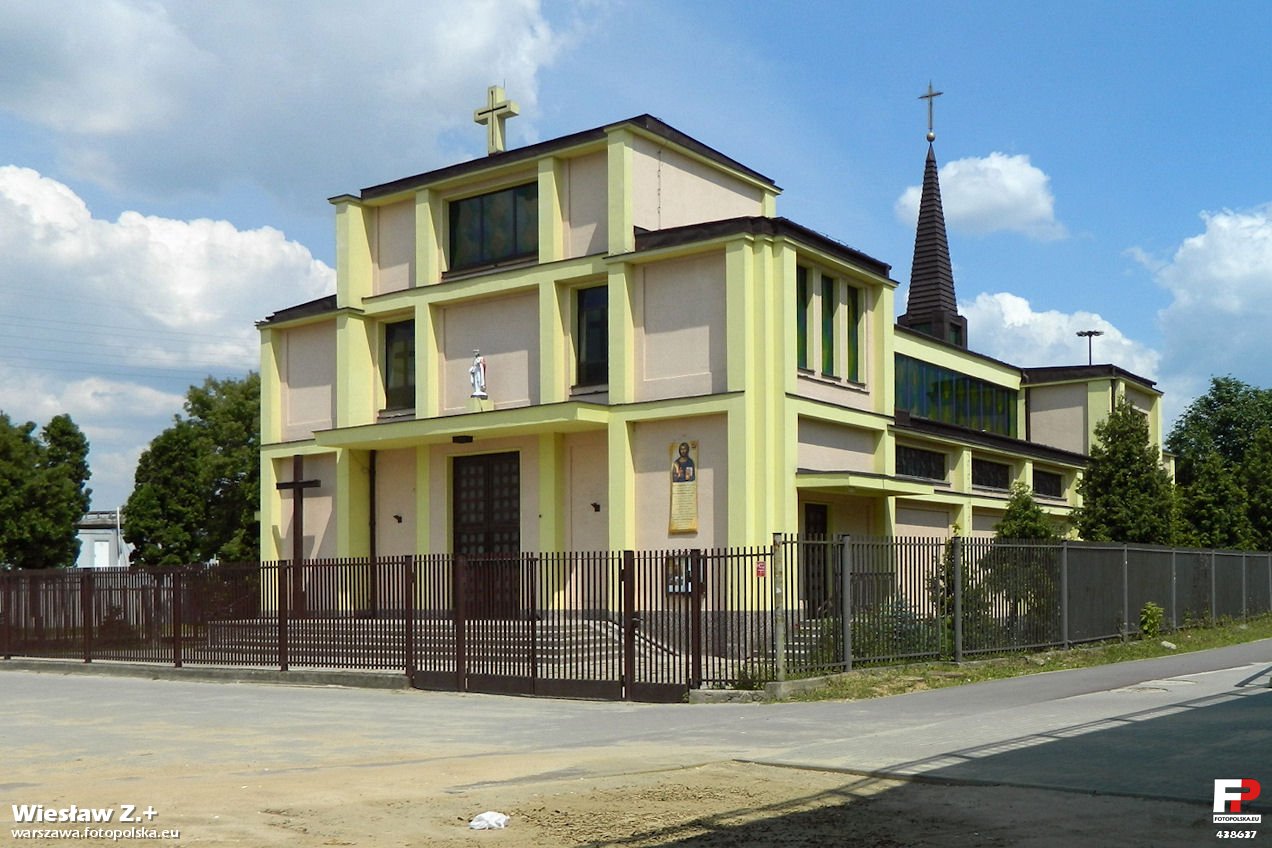 Kościół Jezusa Chrystusa Króla Pokoju więcej zdjęć (3) Architekt: Stanisław Marzyński Zbudowano: 1969-1970 Kościół pod wezwaniem św. Jadwigi powstał w latach 1920-1921 jako drewniany barak, na terenie darowanym przez ks. Marię Radziwiłłową i państwa Grędzickich. Kardynał Kakowski, podczas wizyty na Pelcowiźnie zgodził się na budowę świątyni. W jego utworzenie niemały wkład mieli mieszkańcy tamtych terenów. W 1920 r. na Pelcowiznę przybył zaproszony przez księżnę Annę Radziwiłłową kard. Aleksander Kakowski. Zebrali się okoliczni mieszkańcy oraz duchowieństwo wraz z proboszczem parafii Matki Bożej Różańcowej. Księdza Kardynała poproszono o mianowanie kapłana, który zająłby się budową kościoła. Zaledwie w ciągu sześciu miesięcy postawiono kaplicę-barak mieszczący 1,5 tys. wiernych. 17 października 1920 roku kościół poświęcił ks. Zygmunt Łubieński. Wyposażenie podarowali kościołowi parafianie. W 1929 zbudowano siedmiogłosowe organy przez firmę Biernacki. Niezależna parafia pod wezwaniem św. Jadwigi została erygowana 22 października 1921 roku. Dekretem z dnia 10 lipca 1925 roku Jego Eminencja Ks. Kardynał Aleksander Kakowski uczynił parafię Świętej Jadwigi w Warszawie całkowicie niezależną od parafii M. Boskiej Różańcowej w Warszawie. 5 czerwca 1938 roku w tutejszej parafii odbyła się wizytacja kanoniczna. Wizytację przeprowadził Jego Ekselencja Ks. Dr Stanisław Gall Arcybiskup-Sufragan Warszawski Asystent Tronu Papieskiego. Od 11 do 18 kwietnia 1966 roku - zgodnie z zarządzeniem Kurii Metropolitalnej - parafia obchodziła Tydzień Tysiąclecia. W latach 30. ubiegłego stulecia sporządzono plany nowego kościoła. Niestety spłonęły one w pożarze plebanii. Kaplica w czasie II wojny światowej uległa poważnej dewastacji, a plebania spaliła się doszczętnie. W 1944 kościół został zniszczony przez ostrzał, a wyposażenie wywieziono do kościoła MB Różańcowej na Bródnie. Z 5 tys. parafian pozostało zaledwie 500 osób, praktycznie bez środków do życia. Zdecydowano o przewiezieniu sprzętów kościelnych do tymczasowej kaplicy przy ul. Poborzańskiej 33. Wkrótce mieszkańcy utworzyli „Radę Opiekuńczą Kościoła św. Jadwigi” i odnowili zniszczony kościół. Parafia zaczęła się rozrastać, kiedy wokół dużych zakładów jak fabryka FSO czy Polfa zaczęły powstawać hotele robotnicze. Od 11 do 18 kwietnia 1966 roku - zgodnie z zarządzeniem Kurii Metropolitalnej - parafia obchodziła Tydzień Tysiąclecia. Dzień 14 kwietnia obchodzony był jako Historyczny Dzień Chrztu Świętego naszego Narodu i w tym dniu obchodzono uroczyste "Te Deum całego Narodu". Od 16 do 24 kwietnia odbyły się Święte Misje Tysiąclecia. Misję przeprowadzili O.O. Redemptoryści z Warszawy. Krzyż misyjny ufundował Piotr Zadrożny z Żerania. 16 października 1966 roku odbyła się uroczystość milenijna "Parafialne Te Deum Tysiąclecia" na którą delegacja przywiozła relikwie św. Jadwigi z Trzebnicy k. Wrocławia. Obecny kościół w parafii św. Jadwigi budowany był etapami. Prace rozpoczął w 1969 r. ks. Ryszard Grygiełko. Właściwie pozwolenie władz zezwalało tylko na remont starej, mocno zniszczonej kaplicy, która nadawała się tylko do rozbiórki. Ks. Grygielko potajemnie rozpoczął więc budowę nowego kościoła. W lipcu 1970 r. władze wstrzymały prace. Budowę ukończono rok później. Wreszcie kościół został obmurowany później staraniem mieszkańców Żerania, Pelcowizny i Śliwic wg proj. Hugona Kudera w 1970. W uroczystość jubileuszu pięćdziesięciolecia istnienia parafii 19 września 1971 roku Jego Eminencja Ks. Kardynał Prymas Stefan Wyszyński dokonał poświęcenia nowej świątyni oddanej Chrystusowi Królowi Pokoju. 24 maja 1972 roku gościł ponownie w parafii Jego Eminencja Ks. Kardynał Prymas Stefan Wyszyński, który przybył na zjazd kolegów kursowych z okazji ósmych święceń kapłańskich ówczesnego proboszcza ks. Ryszarda Grygielko. Choć parafii patronuje św. Jadwiga, kościół nosi wezwanie Jezusa Chrystusa Króla Pokoju. W ołtarzu głównym znajduje się krzyż z postacią Chrystusa, a pod nim obraz Matki Bożej Nieustającej Pomocy. Wizerunek św. Jadwigi umieszczony jest na lewej bocznej ścianie prezbiterium. Kościół w parafii św. Jadwigi odgrywał istotną rolę w czasie tworzenia się „Solidarności”. 27 kwietnia 1973 roku parafię odwiedził przebywający w Polsce Ksiądz Kardynał A. Tabera - Prefekt Kongregacji Kultu Bożego w Rzymie. Wizytę złożył wraz z sekretarzem Episkopatu Polski Ks. Biskupem Bronisławem Dąbrowskim. 23 marca 1976 roku poświęcono nową Drogę Krzyżową wykonaną przez rzeźbiarkę z Warszawy. Poświęcenia dokonał Jego Eminencja Ks. Kardynał Prymas Stefan Wyszyński. 21 września 1981 roku został w tym kościele poświęcony sztandar "Solidarności" FSO Warszawa. Poświęcenia dokonał ks. Jerzy Popiełuszko. W kościele Św. Jadwigi, w czasie stanu wojennego - w grudniu 1981 roku, powstał jeden z punktów utworzonego na Pradze Północ Prymasowskiego Komitetu Pomocy Uwięzionym. W lipcu, po amnestii, zmienił on nazwę na "Prymasowski Komitet Charytatywno - Społeczny". 2 kwietnia 1989 roku odbyła się uroczystość konsekracji nowego 300 - kilogramowego dzwonu "Jadwiga", którego fundatorami byli parafianie wraz z Proboszczem. Konsekracji dokonał Ks. Kardynał Józef Glemp Prymas Polski. ul. Modlińska więcej zdjęć (345) |
