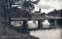 Lata 1900-1920 , Zdjęcie wykonano z ul. Żwirowej na północny-zachód w stronę Leśnicy. Na pierwszym planie stara kładka Złotnicka nad Bystrzycą, a w tle nieistniejący Kościół staroluterański przy ul. Skoczylasa lepiej widoczny na fotce nr 003105Skomentuj zdjęcie |