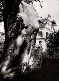 Lata 1960-1965 , Parkowy dąb i fragmencik elewacji pałacu w Poddębicach. Kuriozalna kompozycja kartki podpisanej "pałac".Skomentuj zdjęcie