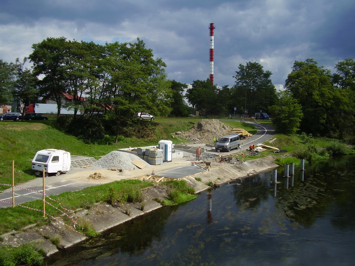 29 sierpnia 2013 , Przystanek tramwaju wodnego na Gwdzie w budowie - widok z mostu Zygmunta Starego.Skomentuj zdjęcie