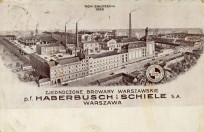 Browar Haberbusch i Schiele więcej zdjęć (13) Browar Haberbusch i Schiele – istniejąca w latach 1846–1948 spółka prowadząca zakład produkcji piwa, który mieścił się przy ul. Krochmalnej 59 w Warszawie. Jego założycielami i właścicielami byli Błażej Haberbusch, Konstanty Schiele i Jan Henryk Klawe. 11 marca 1846 Jan Henryk Klawe i Błażej Haberbusch nabyli na licytacji Banku Polskiego stary browar Ludwika Suchockiego, ostatnio będący własnością niejakiego Daniszewskiego. Błażej Haberbusch był piwowarem, a Jan Henryk Klawe byłym piekarzem, z dużym zasobem finansowym, po sprzedaży piekarni i kilku posesji w Warszawie. Dobrali do spółki Konstantego Schiele, z którym wcześniej Haberbusch pracował w browarze Schöffera i Glimpfa znajdującym się na skrzyżowaniu ulic Krochmalnej i Ciepłej. Powstała w ten sposób spółka rodzinna Haberbusch, Schiele i Klawe. Firma, która produkowała ciemne, mocne piwo w stylu bawarskim, rozwijała się prężnie. W 1849 nabyła browar znajdujący się na sąsiedniej posesji przy ul. Wroniej, a rok później kupiła browar Czarneckiego mieszczący się przy ulicy Kruczej. Do znacznego rozwoju, oprócz udanych inwestycji, przyczyniły się m.in. licznie powstające ogródki piwne, które finansował browar. W 1865 Henryk Klawe postanowił wycofać się ze spółki, która wypłaciła mu udziały w astronomicznej na ówczesne czasy kwocie 42 tys. rubli. Od tej pory spółka nosiła nazwę Haberbusch i Schiele. Na początku XX w. Haberbusch i Schiele był największym browarem warszawskim i jednym z największych w Europie. W 1907 przejął browar W. Kijoka, a cztery lata później wybudowano największy w Królestwie Polskim komin mierzący 65 m. W 1908 zmarł ostatni z rodu Haberbuschów - Karol. Mimo bezpotomnej śmierci obu Haberbuschów nazwisko ich pozostało w nazwie firmy. Do zarządu z ramienia rodu Haberbuschów wszedł Jan Patzer, a prezesem spółki został Feliks Schiele. Po jego śmierci stery rodzinnej firmy przejął jego młodszy brat Kazimierz. W listopadzie 1932 miała miejsce katastrofa budowlana po zawaleniu ściany browaru, w wyniku której śmierć poniosło 18 osób. W 1934 sąd uznał dyrektora browaru Henryka Oppenheima za winnego nieumyślnego spowodowania śmierci kilkunastu osób oraz uszkodzenia ciała kilkunastu innych ofiar. Przedsiębiorstwo ucierpiało podczas obrony Warszawy we wrześniu 1939. Studnie głębinowe zakładu zasilały w wodę uszkodzoną sieć miejską, a w budynku słodowni zakwaterowano 500 uciekinierów z zachodniej części kraju. Po zajęciu Warszawy browar znalazł się pod administracją niemiecką i funkcjonował do 1944. Magazyny przedsiębiorstwa przy ul. Grzybowskiej 58 (wejście od ul. Ceglanej 4/6), w których znajdowały się m.in. duże zapasy jęczmienia, stały się ważnym źródłem żywności dla mieszkańców miasta Po wojnie zniszczenia zakładów oceniano na 70%. Z wywiezionych z Warszawy maszyn odzyskano jedynie aparaturę z Fabryki Wódek i Likierów przy ul. Ceglanej. W piwnicach zniszczonego browaru znajdowało się kilka tysięcy hl piwa, które sprzedano w marcu i kwietniu 1945. W 1946 browar został znacjonalizowany, jednocześnie podjęto decyzję, aby nie odbudowywać zakładu na dawnym miejscu. Decyzję zmieniono w 1950 i produkcję na Woli wznowiono w 1954. Spółka działała do pierwszych lat XXI w., m.in. jako Warszawskie Zakłady Piwowarskie (od 1968), a później Browary Warszawskie. Budynki uległy rozbiórce po 2004, a od 2005 produkcja piwa została przeniesiona do Warki. Teren dawnego browaru został sprzedany deweloperowi pod nową zabudowę mieszkaniową, pomiędzy ulicami Krochmalną i Chłodną, a biurową w części działki przy ul. Grzybowskiej. ul. Grzybowska więcej zdjęć (1405) Ulica Grzybowska – jedna z ulic w dzielnicy Śródmieście (Śródmieście Południowe) i Wola (Mirów, Czyste), o długości ok. 2,5 km. Historia ulicy Grzybowskiej zaczyna się już w średniowieczu: pierwotnie była drogą narolną folwarku książęcego, później - starościńskiego. Nazwa ulicy pochodzi od jurydyki Grzybów założonej w roku 1650. Od powstania w roku 1693 jurydyki Wielopole dawna droga na odcinku Plac Grzybowski - ul. Ciepła stała się granicą obu jurydyk. W pierwszej połowie XVIII wieku była bardzo istotnym traktem wiodącym na zachód; na jednym z planów opisano ją Landt Straße nach Breslau co znaczy "Droga krajowa do Wrocławia". W roku 1770 ulica została w większości uregulowana, jedynie najstarszy, początkowy odcinek zachował swój nieco chaotyczny bieg aż do lat sześćdziesiątych XX wieku. Właśnie przy tym początkowym, granicznym odcinku powstała jeszcze w XVII wieku: były to luźno rozrzucone domy drewniane, lecz już w roku 1784 przy ulicy działało 11 browarów; podobnie jak na pobliskiej ulicy ul. Żelaznej browarnictwo zawsze odgrywało znaczącą rolę. Jednak okoliczni mieszkańcy nie trudnili się jedynie wyrobem piwa: przed rokiem 1792 u zbiegu z ul. Ciepłą powstała kuźnia, zaś za Okopami Lubomirskiego i linią obecnej ulicy Towarowej istniały dwie cegielnie otoczone gliniankami, blokującymi wytyczenie przedłużenia ulicy. Pomimo tej niedogodności po roku 1790 nowy odcinek od Przyokopowej do Karolkowej jednak powstał. W rozwidleniu ulic i Towarowej i Przyokopowej istniała ówcześnie glinianka, co sprawiało, że nowy fragment był od starszej części nieco odizolowany. Jeszcze w roku 1819 na 39 posesji tylko 10 miało zabudowę murowaną; poza odcinkiem Ciepła - Żelazna dominowały domostwa drewniane. Proces wymiany zabudowy na murowana nasilił się w latach 1832-38: powstało wtedy dziewięć kamienic oraz pałac i kamienica należące do architekta Jana Jakuba Gaya. Niezwykle starannie zaprojektowany pałac był wzorowany na berlińskiej Akademii Budownictwa (Bauakademie) wzniesionej według projektu Karla Friedricha Schinkla i słynął z nowatorskiego w Warszawie 