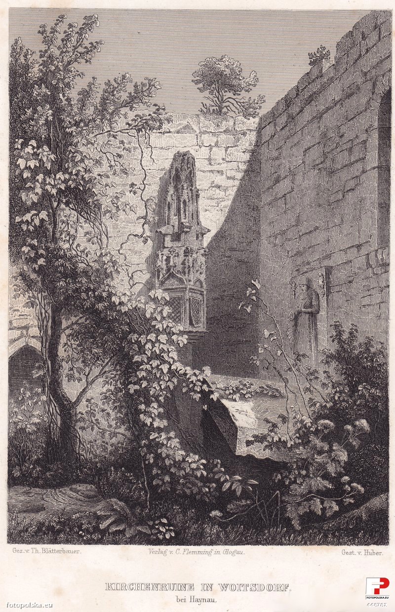 1885 , Ruiny kościoła w Wojciechowie; widoczne gotyckie sakramentarium.Skomentuj zdjęcie |