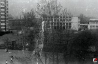 1990 , Widok na ul. Ścinawską, szkołę nr 46 z czteropiętrowca przy ul. Zachodniej, Ścinawska 30-34 w budowie, rok prawdopodobnie 1990.Skomentuj zdjęcie