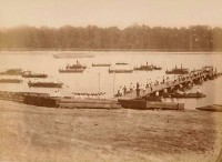 1884 , Rosyjska załoga Twierdzy Nowogieorgiewsk podczas budowy mostu pontonowego. Fot. album "Новогеоргиевск 1884".Skomentuj zdjęcie