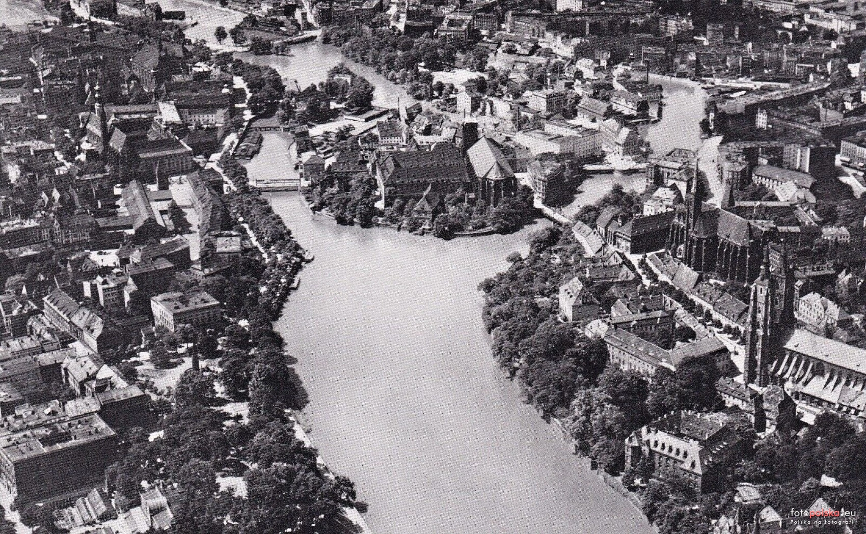 Rzeka Odra (Wrocław) więcej zdjęć (63) Dawniej: Die Oder UWAGA: Na zbiór zdjęć i obiektów rzeki Odry we Wrocławiu składają sie odpowiednie zbiory przypisane do wydzielonych odcinków rzeki w granicach miasta, czyli Odry Górnej, Odry Południowej. Odry Północnej i Odry Dolnej. Wyspa Piasek więcej zdjęć (282) Dawniej: Sandinsel Jedna z odrzańskich wysp w obrębie historycznego starego miasta oraz Śródmiejskiego Węzła Wodnego – Górnego. Z lewym brzegiem Odry i Starym Miastem połączona jest Mostem Piaskowym, z Ostrowem Tumskim - Mostem Tumskim, a z prawym brzegiem i z Wyspą Młyńską – Mostami Młyńskimi. Oprócz tego z Wyspy Piasek na Wyspę Słodową biegnie przez Kładkę Piaskową trakt spacerowy. Południowo-zachodni skrawek wyspy, odcięty od niej kanałem ze Śluzą Piaskową, nosi nazwę Wyspy Daliowej. Nazwa wyspy (niem. Sandinsel, łac. Insula Arena) wywodzi się od znajdującego się na niej kościoła Najświętszej Marii Panny na Piasku: łacińskie wezwanie kościoła brzmi bowiem Sancta Maria in Arena i pochodzi od rzymskiego kościoła św. Marii zbudowanego w miejscu dawnego cyrku. W czasach rzymskich cyrk wysypany był piaskiem, który po łacinie nazywa się właśnie (h)arena. Do czasów wyburzenia na rozkaz Napoleona wrocławskich fortyfikacji w XIX wieku Wyspa Piasek znajdowała się bezpośrednio przed Bramą Piaskową, północnym wjazdem do miasta. Już we wczesnym średniowieczu przebiegał przez wyspę główny trakt w kierunku północ-południe. Przed kasatą zakonów w 1810 cała wyspa stanowiła własność kościelną i dopiero po tym roku została włączona pod miejską jurysdykcję. Wyspa ma powierzchnię około pięciu hektarów. Przebiega przez nią jedna ulica (z północy na południe) - ul. św. Jadwigi; oprócz niej w stronę Ostrowa Tumskiego biegnie uliczka Najśw. Marii Panny; pozostałe ulice są ślepe. Oprócz wspomnianego już kościoła NMP znajduje się tu jeden z gmachów Biblioteki Uniwersyteckiej (dawny klasztor augustianów), dawny gotycki kościół św. Anny, po 1810 przebudowany najpierw na szpital, obecnie budynek mieszkalny, barokowa cerkiew prawosławna św. Cyryla i Metodego (do tego budynku przeniesiono w 1810 kościół pod wezwaniem św. Anny ze wymienionego tu wcześniej budynku gotyckiego) i kilka innych zabudowań, w tym młyn wodny Maria (nad odnogą oddzielającą ją od Wyspy Młyńskiej). Niegdyś wyspa była gęsto zabudowana, znajdował się na niej (na skrzyżowaniu ul. św. Jadwigi i Wodnej) klasycystyczny dom własny Carla Gottharda Langhansa oraz liczne zabudowania w konstrukcji słupowo-ryglowej, zostały one zniszczone w ostatnich miesiącach II wojny światowej. W 2005 odsłonięto przy bulwarze Stefana Wyszyńskiego (na skwerze po północnej stronie kościoła NMP) pomnik kardynała Kominka ze słynnym cytatem z Orędzia do biskupów niemieckich. Pomnik stanął w 40. rocznicę jego opublikowania. Źródło: Autorzy: Licencja: [ CC-BY-SA 3.0] Zdjęcia lotnicze - Ostrów Tumski więcej zdjęć (177) Zdjęcia lotnicze więcej zdjęć (58) Dawniej: Luftbild Zdjęcia lotnicze - Stare Miasto więcej zdjęć (987) Dzielnica Stare Miasto więcej zdjęć (53) Dawniej: Altstadt Zdjęcia lotnicze - Nadodrze więcej zdjęć (609) Dzielnica Nadodrze więcej zdjęć (14) Zdjęcia lotnicze - Nowe Miasto więcej zdjęć (108) Dzielnica Nowe Miasto więcej zdjęć (11) Dawniej: Neustadt |