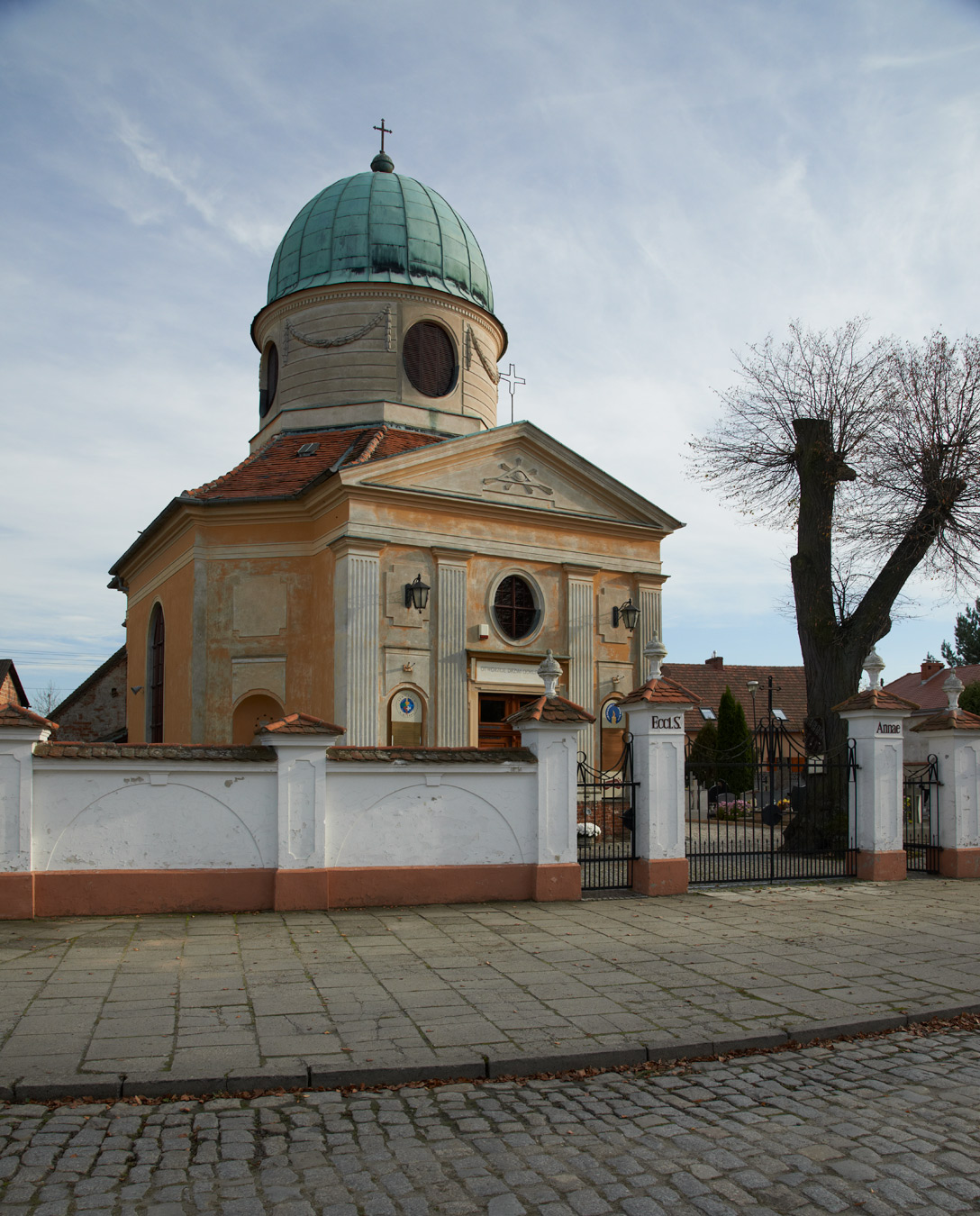 Kościół św. Anny więcej zdjęć (35) Atrakcja turystyczna Zbudowano: 1348. Dawniej: Annekirche, St. Anna Kirche Zabytek: 1818 z 22.08.1966 Od XIV w. ten zakątek Śląska wymieniany już jest jako własność rodów szlacheckich. Zapis z 1348 r. świadczy o istnieniu kościoła, zbudowanego przez rycerza Henryka z Kałowa (po łacinie odnotowanego jako Henricus de Cal). Prace przypuszczalnie trwały od roku 1344 do 1348. Ich owocem była niewielka świątynia w stylu gotyckim. W znacznej części zachowała się i dziś stanowi ona prezbiterium widawskiego kościoła. Zamysł wzniesienia świątyni wynikał podobno z kłopotów, jakie w tamtych czasach sprawiała Odra i jej odnogi. Rzeka ta bowiem często występowała ze swych koryt, utrudniając, a nawet uniemożliwiając przedostanie się do Wrocławia. Bywało, że na długi czas wierni mieszkający na północ od miasta byli odcięci od swych parafialnych kościołów. Dom Boży nad Widawą pozwalał nie zaniedbać praktyk religijnych nawet w czasie długotrwałych powodzi. Pamięć o fundatorze, Henryku z Kałowa, ma swój wyraz także w tym, że do dziś jego rodowy herb funkcjonuje jako godło osiedla, obdarowanego przez pobożnego rycerza jakże potrzebną świątynią. Wiadomo jednak, że Widawa wielokrotnie zmieniała właścicieli, by w XVI w. znaleĽć się w rękach wrocławskich patrycjuszy. A że w okresie reformacji znaczna ich część podążyła za wezwaniem Marcina Lutra - w 1552 r. protestanci przejęli także widawski kościół. Dokonali w nim wielu zmian, m.in. dobudowując zakrystię i zastępując okna gotyckie renesansowymi. Ok. r. 1600 powstały też sklepienia. Być może wcześniejsze zbudowane były z drewnianych belek. Kościół z powrotem znalazł się w posiadaniu katolików po upływie okrągłego stulecia - w 1653 r. Teraz był już jednak tylko filialną świątynią parafii Kryniczno. W okolicy przeważali bowiem protestanci. Według spisu z 1706 r. w wiosce mieszkało 625 ewangelików i tylko 17 katolików (odnotowano też dwóch podających się za agnostyków). Wkrótce jednak liczba katolików zaczęła wzrastać. Musiało tak być, skoro za czasów kolejnego właściciela, barona Franza Andreasa von Sigstorpff, władającego Widawą w latach 1749-77, dokonano kolejnych przebudów. Wtedy właśnie powstała wczesnoklasycystyczna nawa główna na planie krzyża greckiego, nad którą wznosi się wysoka kopuła. Przede wszystkim jednak - obok szkoły ewangelickiej powstała duża, katolicka. Zasłużył się także kolejny właściciel, wrocławski kupiec Steyer, który tutejszym majątkiem zarządzał od 1794 roku. Postanowił on rozbudować świątynię i dla tego celu sprowadził ucznia jednego z najwybitniejszych architektów swego czasu - Karla Gottharda Langhansa, twórcy m.in. berlińskiej Bramy Brandenburskiej. Uczniem tym był Karl Gottlieb Geissler, znany jako budowniczy wrocławskich kamienic przy ul. Św. Jadwigi i pałacu biskupiego na Ostrowiu Tumskim oraz wspaniałego pałacu Machnickich (w pobliskich Machnicach). Od początku swego istnienia kościół otoczony jest cmentarzem. Wiadomo, że jeszcze w XVIII w. znajdowało się na nim wiele renesansowych i barokowych epitafiów, wykutych w piaskowcu i marmurze. W XIX w., być może przy okazji któregoś z remontów, niemal wszystkie przepadły. Szczęśliwie zachowała się część późniejszych grobów i to nie tylko przykrytych kamiennymi pomnikami. Mogiłę Klary Hartmann wieńczy drewniany krzyż z 1931 r. Nazwiska wyryte na zabytkowych stelach świadczą też o słowiańskich mieszkańcach tej ziemi. Takie zapewne były korzenie pochowanych tutaj czasem blisko już sto lat temu - Pauliny i Antoniego Wittków, Karoliny Novak czy rodziny Schimanskich. Informacje o cyklicznie przeprowadzanych w XIX w. remontach są dowodem na to, że widawscy katolicy otaczali swą świątynię dużą troską. Musieli być też coraz liczniejsi. W 1901 r. na kopule osadzili duży, żelazny, pozłacany krzyż z gałką kryjącą dokumenty. W 1912 r., po 360 latach, Widawa znów stała się samodzielną parafią. Parafia zanotowała po zakończeniu działań wojennych zniszczenie kopuły i dachu nad nawą kościoła, co uniemożliwiało korzystanie z niego w latach 1945-1948, a także utratę siedziby probostwa. Pierwszym kapłanem po zakończeniu działań wojennych był ksiądz pochodzenia niemieckiego Józef Hayduk,urodzony 24 czerwca 1902 roku. Sprawował on obowiązki proboszcza przez parę miesięcy, tzn. od 26.10.1945 roku do końca 1945 roku, przy czym pomagał jeszcze w roku 1946 nowemu polskiemu księdzu Maksymilianowi Seiffertowi. Opis wyposażenia kościoła: Ołtarz główny barokowy, drewniany polichromowany i złocony, z rzeżbami drewnianymi św. Jakuba Apostoła i św. Jana Nepomucena. W nim obrazy olejne na płótnie przedstawiające Matkę Bożą z Rodzicami i św. Józefa. Ołtarze boczne barokowe również drewniane. Jeden pn. Znalezienie Krzyża z obrazem olejnym na płótnie za szkoły Willmanna, z rzeżbami św. Apolonii i drugiej św. bez atrybutów. Przy ołtarzu stoi piaskowcowa gotycka skarbonka z płaskorzeżbą św. Katarzyny z około 1500 roku. Drugi ołtarz pd. Matki Bożej z obrazem olejnym Wniebowzięcie NMP, z połowy XIX wieku i rzeżbami św. Franciszka z Asyżu i św. Antoniego z Padwy.Ambona barokowa pochodzi z połowy XVIII wieku wykonana w drzewie z obrazami czterech ewangielistów. W bocznych ścianach półkoliste wnęki, z piaskowcową figurą św. Jana Nepamucena. Przy ścianie południowej prezbiterium drewniana gotycka rzeżba Madonny z Dzieciątkiem z XV wieku. Rzeżba ludowa z XIX wieku NMP przy modlitwie. Obrazy renesansowe. Zwiastowanie malowane na desce i Naigrywanie malowane na płótnie z około 1600 roku oraz obrazy barokowe: Matka Boża wśród Aniołów z ok. 1700 roku i św. Ignacy Loyola z ok.1750 roku. Źródło ul. Zduńska więcej zdjęć (99) Dawniej: Weide 2 Siedlung |