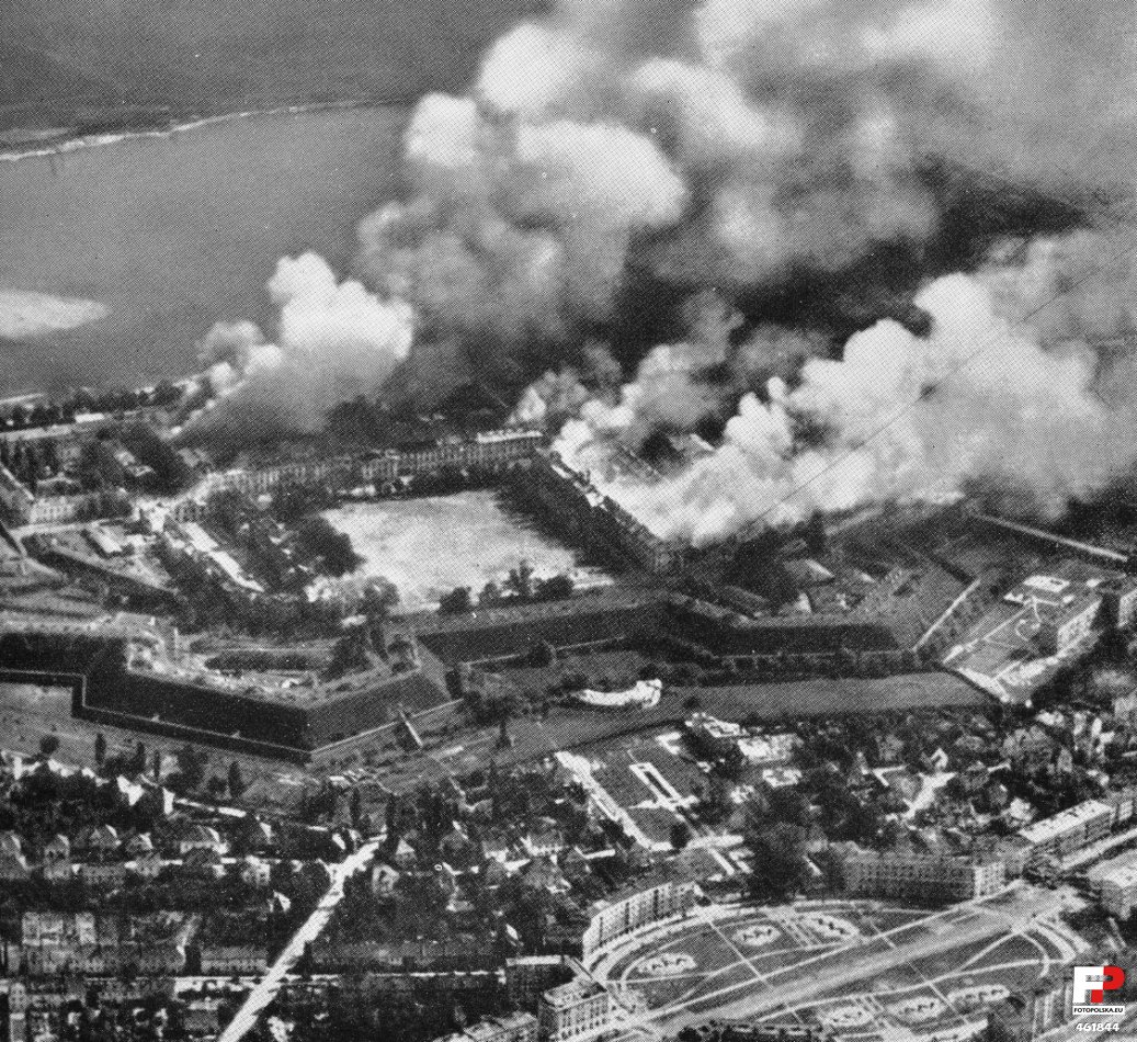 wrzesień 1939 , Cytadela Warszawska bombardowana przez niemieckie lotnictwo we wrześniu 1939 roku. Źródło: "Der luftkrieg in Polen" Berlin 1941Skomentuj zdjęcie