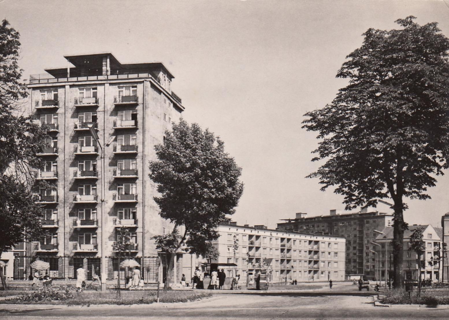 To samo miejsce na kolorowej widokówce: Wieżowiec z tyłu to tyska *jednostka mieszkaniowa*. Tu jest jej berlińska odmiana: 2010-02-14 22:22:30 (16 lat temu)