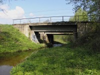 5 maja 2013 , Most na Gzówce, w ciągu dawnej bocznicy kolejowej "Pronitu".Za nim widoczny drugi w ciągu linii nr 26.Skomentuj zdjęcie |