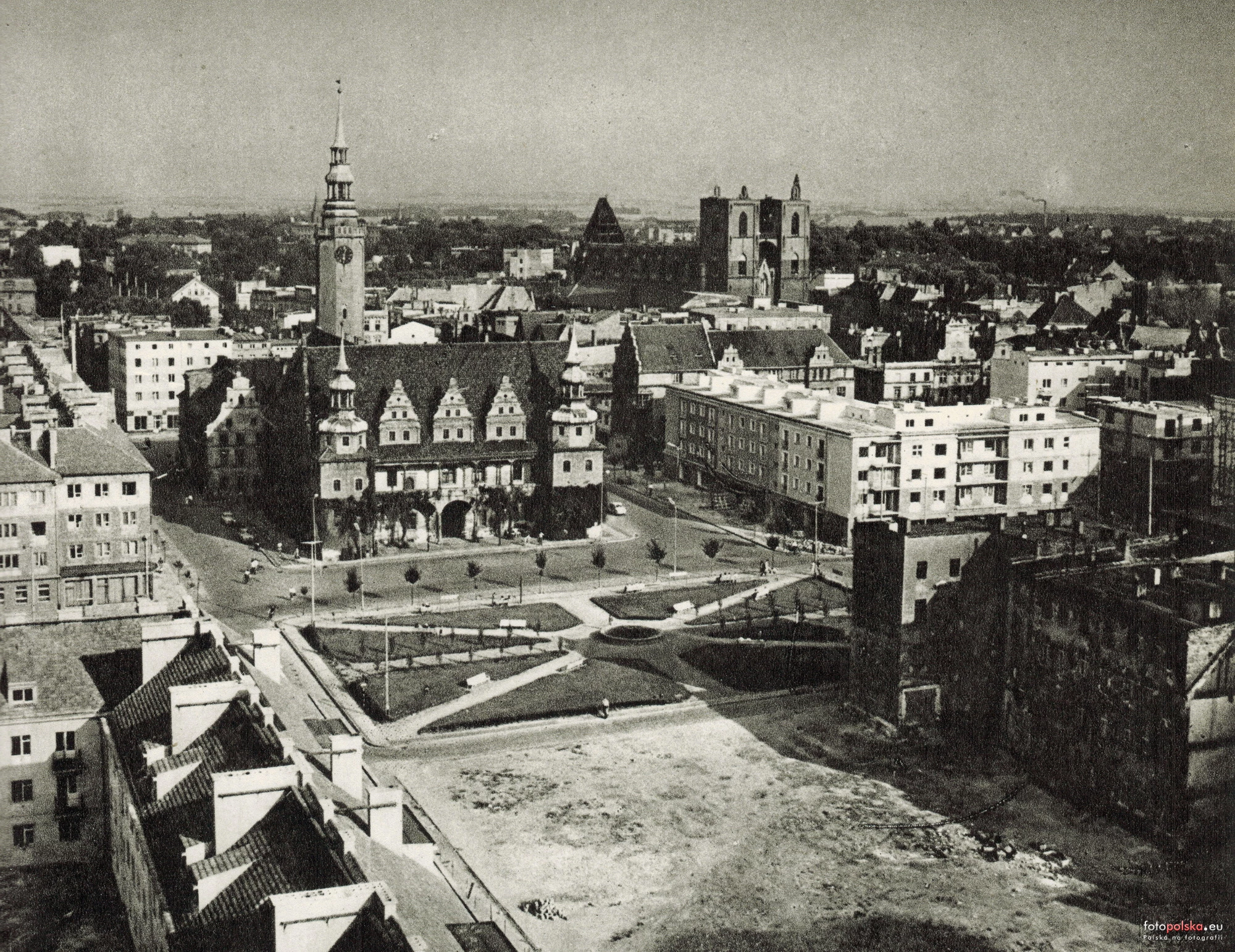 Lata 1965-1970 , Widok z lotu ptaka na Ratusz i Rynek w Brzegu.Skomentuj zdjęcie