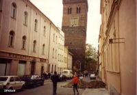 20 października 1991 , Ulica św. Wojciecha z wychyloną Krzywą Wieżą. Wtedy była przejezdna i nieco zaniedbana. Teraz jest deptakiem, z nową nawierzchnią (nieasfaltową !), lokale na parterach kamienic mają inne branże.Skomentuj zdjęcie |