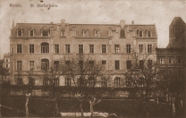 6 pobrań 1546 odsłon 6 średnia ocen Poprzednie i następne zdjęcia legion Obiekty widoczne na zdjęciu Niepodległości 7 więcej zdjęć (51) Zbudowano: 1906 Dawniej: Kloster, Marienheim, Szpital Miejski im. J. K. Łukowicza, Dom Mariański Siostry Franciszkanki od Pokuty i Miłości Chrześcijańskiej po okresie kulturkampfu po raz wtóry przybyły do Chojnic w 1885 roku. Kongregacja od początku postawiła przed chojnicką wspólnotą zakonną zadania opieki nad chorymi oraz prowadzenia placówek wychowawczych. Dla tej działalności siostry wybudowały dom Mariański (1906), z myślą o umieszczeniu w nim przedszkola, szkoły gospodarczej dla dziewcząt i pensjonatu. Działalność wychowawcza wymagała odpowiednich warunków oraz oddzielenia od szpitala. W tym celu w 1901 r. kuria biskupia w Pelplinie zakupiła od p. Eschner - Przewoskiej 36 arów ziemi za 33 tys. marek. Po uzyskaniu wymaganych pozwoleń, budowa rozpoczęła się w czerwcu 1905 r., a zakończyła się jesienią roku następnego. 2 października 1906 r. odbyło się uroczyste poświęcenie trzypiętrowego gmachu nazwanego Zakładem Mariańskim. Oprócz szkoły gospodarczej i przedszkola znajdowała się w nim również kaplica pw. Niepokalanego Poczęcia Najświętszej Maryi Panny. Od tego czasu do 1920 r. istniały dwa osobne konwenty św. Boromeusza i Mariański, potem nastąpiło znów połączenie. Podczas I wojny światowej dom mariański do 1916 r. pełnił funkcję szpitala wojskowego, później już tylko instytucji wychowawczej. Po odzyskaniu niepodległości zarzucano siostrom, że zbyt opieszale wprowadzały język polski do swych placówek pedagogicznych, lecz znalazły obrońcę w osobie proboszcza, ks. kan. Bolesława Makowskiego, a z biegiem czasu instytucja została zupełnie spolonizowana. W szkole gospodarczej uczyło się przeciętnie 60 dziewcząt, nauka początkowo była dwuletnia, potem została skrócona do dwóch semestrów. Szkoła ta dawała doskonałe przygotowanie do prowadzenia domu, uczyła także ogólnej kultury i ogłady. Z powodu kryzysu zmalała liczba uczennic, więc siostry prowadziły kursy szycia i gotowania dla dziewcząt z biednych rodzin. Przez cały okres międzywojenny na parterze budynku istniało przedszkole dla ok. 70 dzieci, również dwa przedszkola miejskie władze powierzyły siostrom franciszkankom. Po II wojnie światowej Szkoła Gospodarstwa Domowego oficjalnie istniała tylko do 1948 r., a następnie trwała pod płaszczem innych form działalności. Ostatecznie zaniechano kursów gospodarczych w 1961 r. wobec kategorycznego zakazu władz. Przedszkole w 1952 r. siostry przekazały "Caritasowi", lecz nadal pracowały jako wychowawczynie. Dom Dziecka, po wielu szykanach i nieustannych kontrolach, odebrano siostrom w 1961 roku. Później gmach został zajęty na przychodnię zdrowia, a siostry franciszkanki coraz bardziej ograniczane, pozostały tylko w domu św. Franciszka do listopada 1981 r., gdy przeprowadziły się do nowego budynku przy ul. Wysokiej 13. Obecnie po przeniesieniu przychodni miejskiej na ul. Kościerską, dawny Zakład Mariański stoi pusty. W 2004 roku został rozstrzygnięty konkurs na zagospodarowanie obiektów poszpitalnych, o czym można przeczytać tutaj. pl. Niepodległości więcej zdjęć (163) Dawniej: Wilhelmsplatz, Plac Królowej Jadwigi |