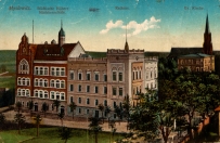 Lata 1907-1914 , Miejskie Liceum Żeńskie (aktualnie Zespół Szkół Ogólnokształcących przy ul. Mickiewicza 6-8, budynek ratusza oraz kościół ewangelicki św. Piotra i Pawła.Skomentuj zdjęcie |