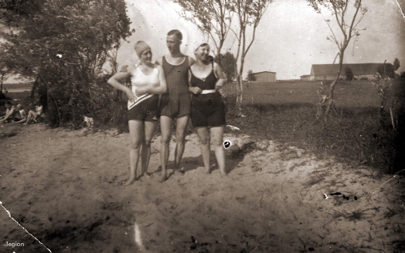 1931 , Charzykowy - letnicy nad brzegiem Jeziora Charzykowskiego.