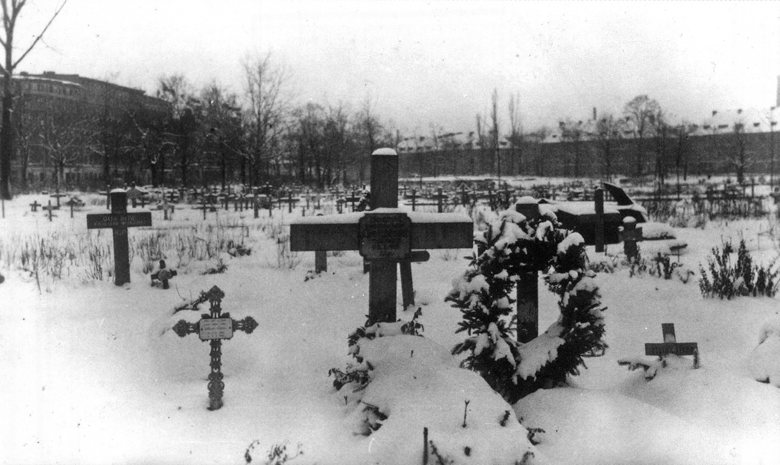 1947 , Cmentarz urządzony na placu Staszica w okresie oblężenia miasta w roku 1945Skomentuj zdjęcie