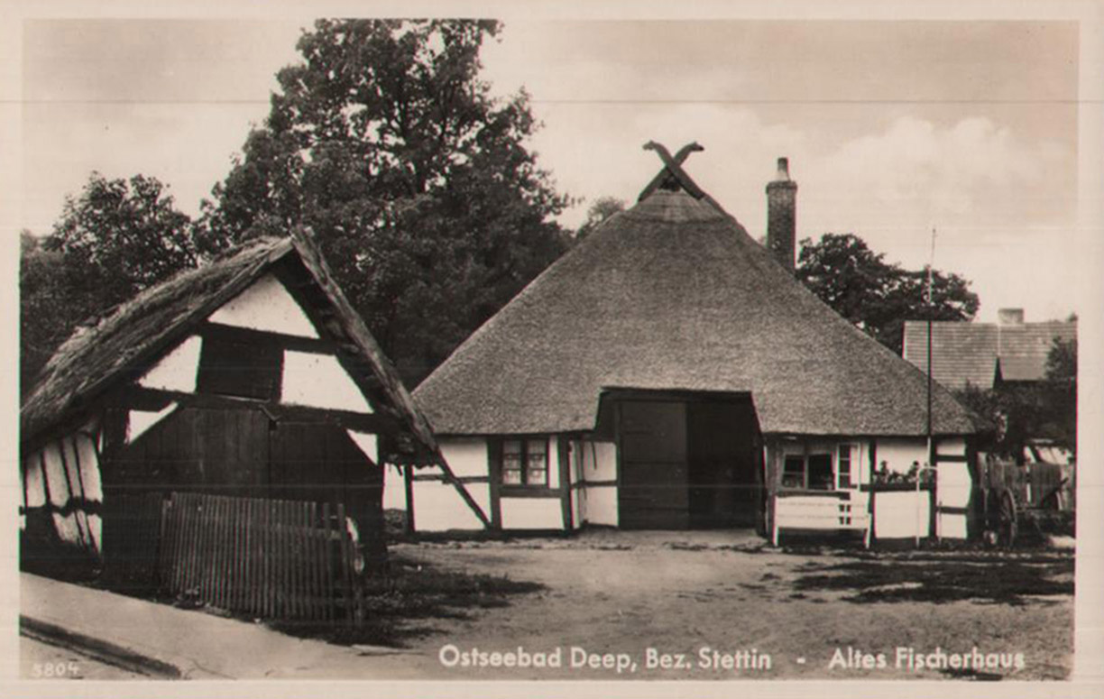 1923 , Gospodarstwo znajdowało się przy dzisiejszej ulicy Trzebiatowskiej na dzisiejszej parceli 170 czyli na terenie bazy OSP. Po prawej stronie na krawędzi zdjęcia widzimy budynki które istnieją do dzisiaj Dom o adresie 6 oraz zabudowania gospodarze na tej samej działce.Skomentuj zdjęcie