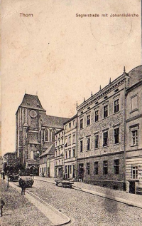 1912 , Widok od południa. Po prawej stronie dawne kasyno oficerskie (wcześniej pałac biskupa kujawskiego Stanisława Dąmbskiego, obecnie siedziba Wydziału Sztuk Pięknych UMK).Skomentuj zdjęcie |