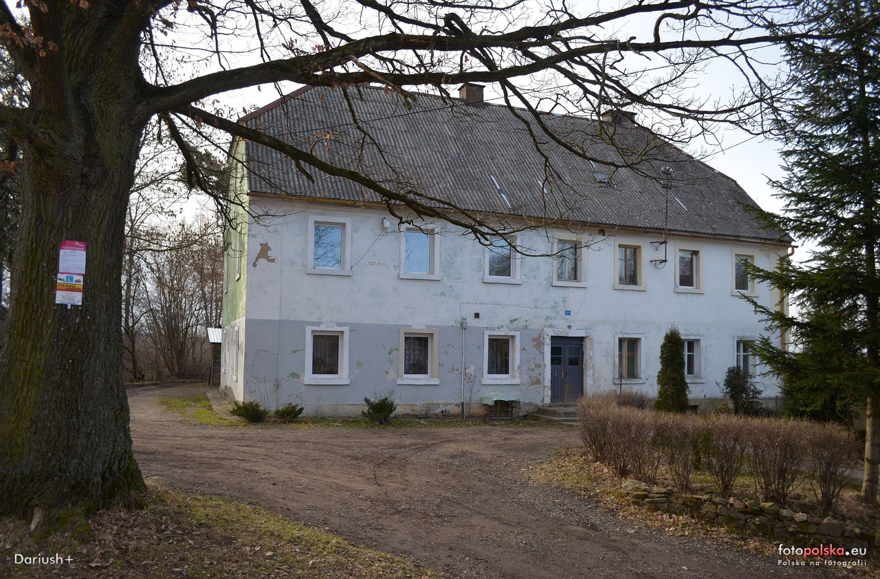10 lutego 2014 , Budynek dawnej szkoły ewangelickiej, widok w wersji bezlistnej, na środku tego placu rośnie co najmniej 200 letni dąb.Skomentuj zdjęcie |