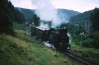 1975 , Tekatka Tkt48-25 z rejsowym pociągiem pasażerskim opuszcza KulinSkomentuj zdjęcie