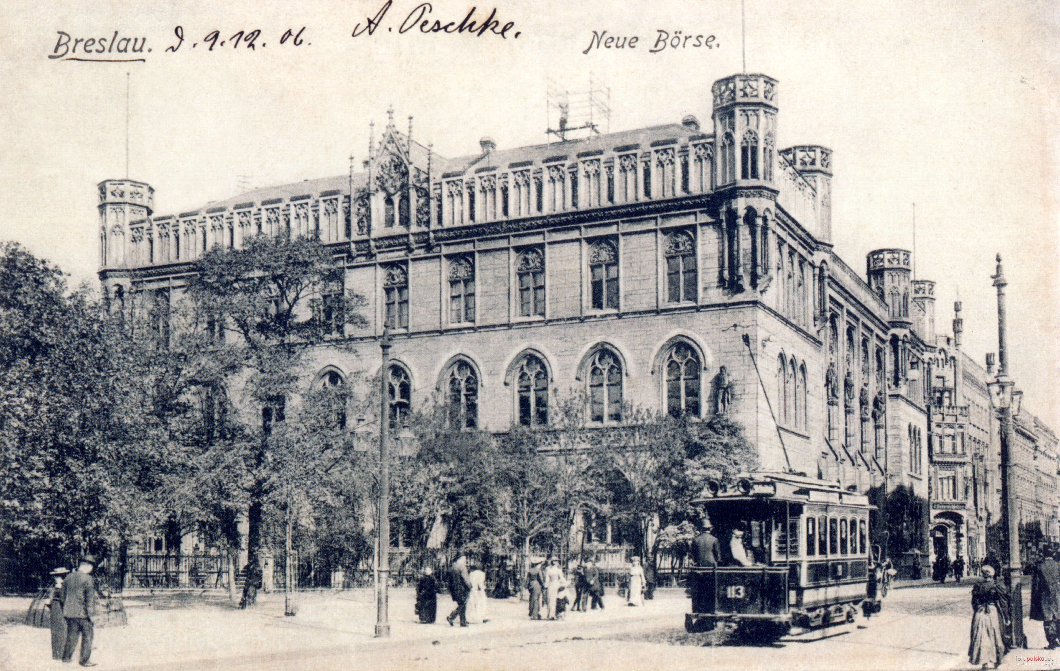 15 pobrań 2530 odsłon 6 średnia ocen Poprzednie i następne zdjęcia esski Obiekty widoczne na zdjęciu Dawna Nowa Giełda więcej zdjęć (99) Architekt: Carl Johann Bogislaw Lüdecke Zbudowano: 1864-1867 Dawniej: Neue Börse - Nowa Giełda, Hala Gwardii Zabytek: 285 z 21.02.1972, A/2779/285 z 4.08.2010 Budynek giełdy o pałacowo zamkowym charakterze, łączący w sobie cechy neogotyku i neorenesansu. Tramwaj elektryczny Herbrand więcej zdjęć (37) Zbudowano: 1893 Pierwsze we Wrocławiu tramwaje elektryczne pojawiły się w 1893 roku. Były to wagony wyprodukowane przez firmę „P. Herbrand & Company” z Ehrenfeld pod Kolonią, noszące w ESB numerację 1-40. Posiadały one z boku 6 wąskich okien zaokrąglonych u góry, 20 miejsc siedzących na dwóch ławkach wzdłuż drewnianego pudła, 12 stojących na pomostach. Wyposażono je w 2 silniki firmy A.E.G. o mocy 12 KM każdy, hamulec ręczny łańcuchowy i awaryjne elektromagnetyczne hamulce zwarciowe. Wymiary to: długość 7 300 mm, wysokość 3 270 mm, szerokość ok. 2 000 mm, rozstaw osi 1 900 mm. Dostarczono także 10 zamkniętych wagonów doczepnych (nr 41-50). Były one podobne do silnikowych i posiadały 20 miejsc siedzących i 16 stojących. W 1896 doszło 15 dalszych wagonów silnikowych (nr 101-115) o takim samym wyglądzie, ale ze zmodernizowanym podwoziem i mocniejszymi silnikami, a dwa lata później w 1898 dostarczono 20 wozów silnikowych (nr 116-135) nowego typu. Wzmocniono nadwozie posiadające teraz 4 szerokie okna, wysokie świetliki dachowe oraz powiększone platformy. Po roku przybyło jeszcze 10 takich wozów (nr 136-145). Z czasem wagony sześciookienne były modernizowane na wzmocnione czterookienne. [v] na podstawie: Przemysław Wiater : „Historia wrocławskiej komunikacji tramwajowej do 1945 roku”, LIBRA, 2014 Jan Wojcieszak „100 jat tramwajów elektrycznych we Wrocławiu” 1993. Tramwaje we Wrocławiu więcej zdjęć (84) Zbudowano: 1877/1893 Dawniej: Straßenbahn in Breslau Pierwszy tramwaj konny we Wrocławiu wyjechał na trasę w lipcu 1877 r., natomiast pierwszą linię elektryczną uruchomiono w czerwcu lub lipcu 1893 r. Komunikacja miejska we Wrocławiu więcej zdjęć (5) ul. Włodkowica Pawła więcej zdjęć (698) Dawniej: Wall Strasse Ulica Pawła Włodkowica – jedna z ulic na wrocławskim Starym Mieście, niegdyś biegnąca wzdłuż linii zewnętrznych murów miejskich na południowo-zachodnim ich odcinku, ale od ich wewnętrznej strony; jej historyczna nazwa – Wallstraße – oznacza "ulicę Wałową". Zaczynała się przy Bramie Mikołajskiej i stamtąd biegła na południe i południowy wschód aż do Schweidnitzer Straße (dzisiejszej Świdnickiej). O godzinie 3:00, przed świtem, 21 czerwca 1749 piorun uderzył w basztę stojącą na miejscu dzisiejszej kamienicy nr 6 przy ul. Włodkowica.W jej wnętrzu znajdowało się dwa tysiące beczek prochu, które eksplodowały, znosząc z powierzchni ziemi okoliczną zabudowę, w znacznej części drewnianą, a nawet uszkadzając odległy o ponad pół kilometra murowany kościół Bożego Ciała przy ul. Świdnickiej i niszcząc okna od strony południowej w kościele św. Elżbiety. Znaczną grupę – około 1/3 – wśród 60 zabitych i dwustu rannych stanowili Żydzi – liczni mieszkańcy w okolicach Wallstraße i Graupenstraße (dzisiejszej Krupniczej)[6]. Po tej katastrofie na miejscu zniszczonych wybudowano nowe domy. Po zburzeniu na polecenie napoleońskich władz okupacyjnych fortyfikacji miejskich po roku 1807 na miejscu murów urządzona została miejska promenada spacerowa wzdłuż Fosy Miejskiej. Możliwa stała się zabudowa nie tylko północno-wschodniej i północnej pierzei Wallstraße (tam stanęła zwarta mieszkalna zabudowa miejska), ale także pierzei południowo-zachodniej i południowej (tu pierwotnie budowano jedynie parterowe obiekty gospodarcze). Przy Wallstraße (Włodkowica) powstały w XIX wieku liczne obiekty związane z funkcjonowaniem wrocławskiej gminy żydowskiej. M.in. w 1820 nabyto posesję w kwartale pomiędzy ulicą św. Antoniego 35 a Włodkowica 5-9, i kilka lat później zbudowano na niej synagogę Pod Białym Bocianem; na posesji nr 14 powstało w 1854 Żydowskie Seminarium Teologiczne. Dziś również siedziba Gminy Wyznaniowej Żydowska we Wrocławiu mieści się przy ul. Włodkowica nr 9. Przy Wallstraße nr 4 zlokalizowana była rezydencja hrabiów Ballestremów. Wschodnia część dawnej Wallstraße, pomiędzy Krupniczą a Świdnicką, przebiegała wzdłuż Exercierplatz ("Placu Ćwiczeniowego", dziś Plac Wolności) i wzdłuż południowego skrzydła rozbudowanego ok. 1845 zamku królów pruskich. Odcinek ten został wyłączony z tej ulicy w 1916; skrajna wschodnia jego część, tuż przy Świdnickiej, pomiędzy budynkiem Opery a Hotelem Monopol nazwana została Agnes Sorma Straße[7], pozostałą część, aż do Krupniczej, włączono do Schloßplatz ("Plac Zamkowy" na miejscu wcześniejszego "Ćwiczeniowego"). Od tego czasu ulica Włodkowica liczy około 0,47 km długości. Po zniszczeniach podczas ostrzału Festung Breslau wiosną 1945 zabudowa ulicy uległa poważnym uszkodzeniom lub zniszczeniu, w części jednak w późniejszych latach ją odbudowano. M.in. w budynku nr 20 położonym w sąsiedztwie skrzyżowania z ul. Ruską znajduje się dziś urząd stanu cywilnego. Patronem ulicy został Paweł Włodkowic. Źródło: Autorzy: Licencja: CC-BY-SA 3.0 |