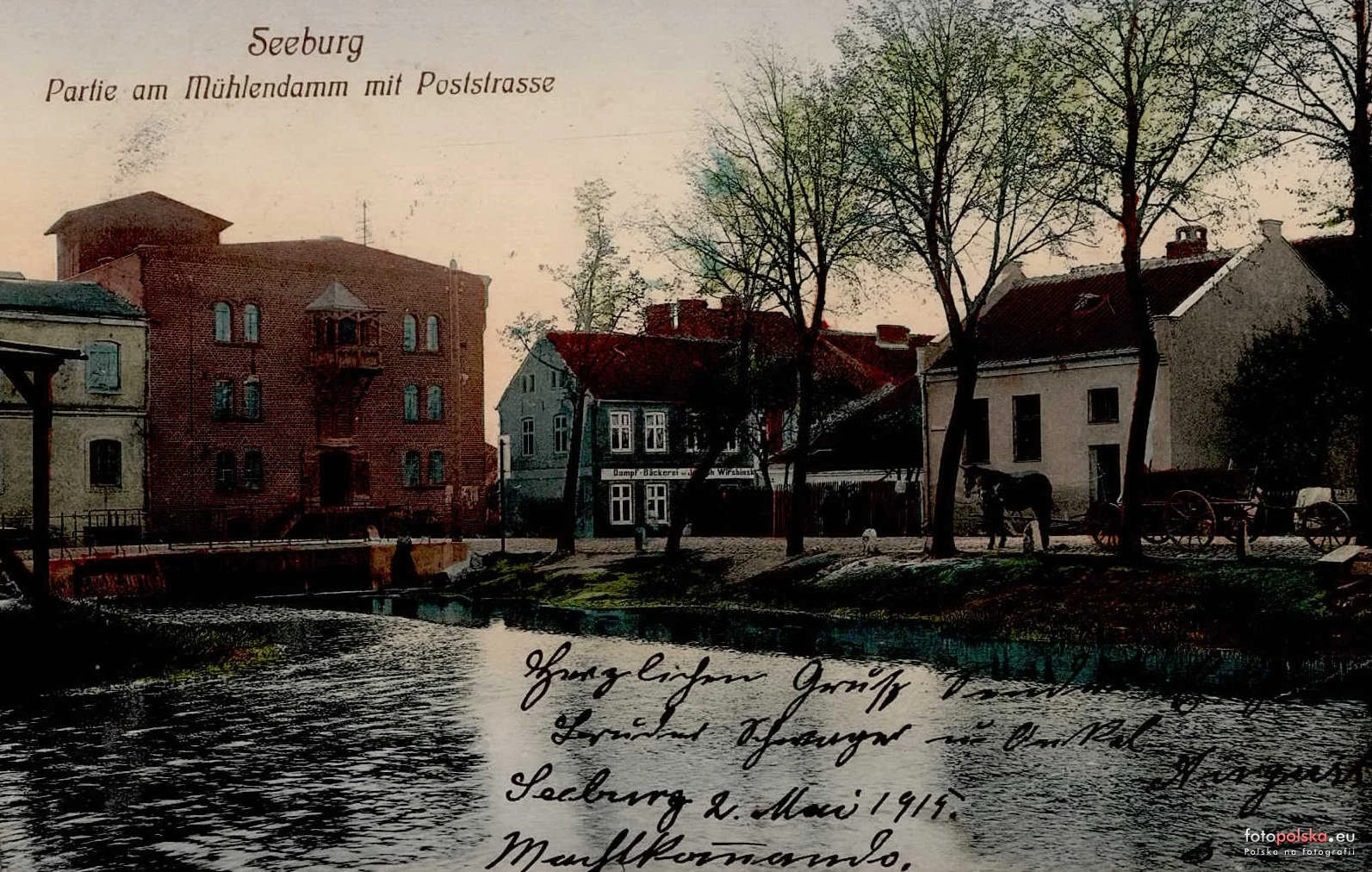Lata 1900-1918 , Fragment stawu młyńskiego ze spiętrzoną wodą rzeczki Symsarny, w oddali od lewej fragment kamienicy Kajki 18, młyn wodny, kamienica Kajki 14 i kamienica Nadbrzeżna 1 przed nadbudowąSkomentuj zdjęcie |