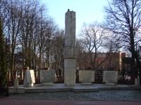 Pomnik Poległych i Pomordowanych Nauczycieli więcej zdjęć (16) Architekt: Adam Smolana Zbudowano: 1960 W hołdzie poległym i pomordowanym nauczycielom wzniesiony został pomnik (odsłonięcie 20.02.1960) przy ulicy 31 Stycznia,- przed Szkołą Podstawową nr.1 ...obelisk z białego piaskowca, na którym widnieje napis:"Chwała poległym nauczycielom 1939-1945" oraz relief orła i po bokach gryf i tur - herby Pomorza i Chojnic. Nazwiska nauczycieli wyryto na osobno stojących 4 tablicach z piaskowca. ul. 31 Stycznia więcej zdjęć (411) Dawniej: Schlochauerstrasse, Człuchowska |