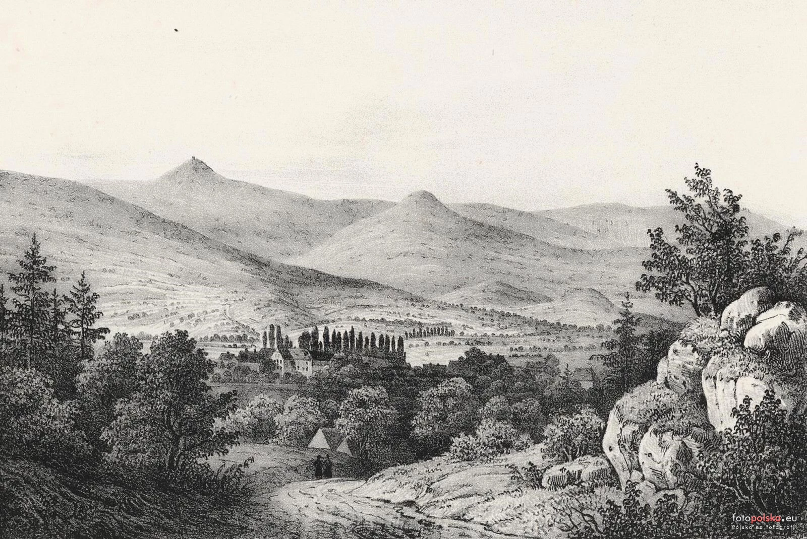 1840 , Panorama Karkonoszy od strony Kowar. Źródło: "Borussia. Museum für Preußische Vaterlandskunde", tom III, zeszyt 8.Skomentuj zdjęcie