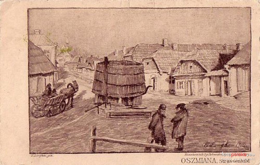 1916 , Fragment ul. Wileńskiej ze studnią miejską na rysunku Erharda Langkaua. Widoczna na rysunku studnia i zabudowa w okół niej nie przetrwały do dzisiejszych czasów. Po prawej widoczna wieża cerkwi Zmartwychwstania Pańskiego.Skomentuj zdjęcie |