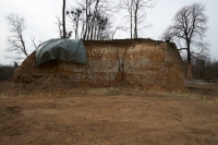 3 marca 2014 , Północna ściana dawnego schronu piechoty. Widoczne są trzy kwadratowe otwory - to wentylacja?Skomentuj zdjęcie