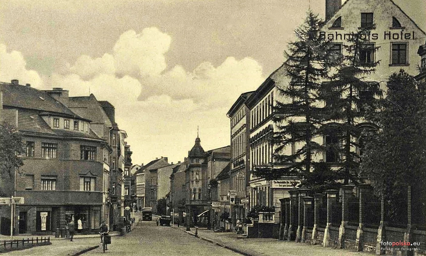 1940 , Ulica Buczka (dawna Bahnhofstrasse) w Żarach. |