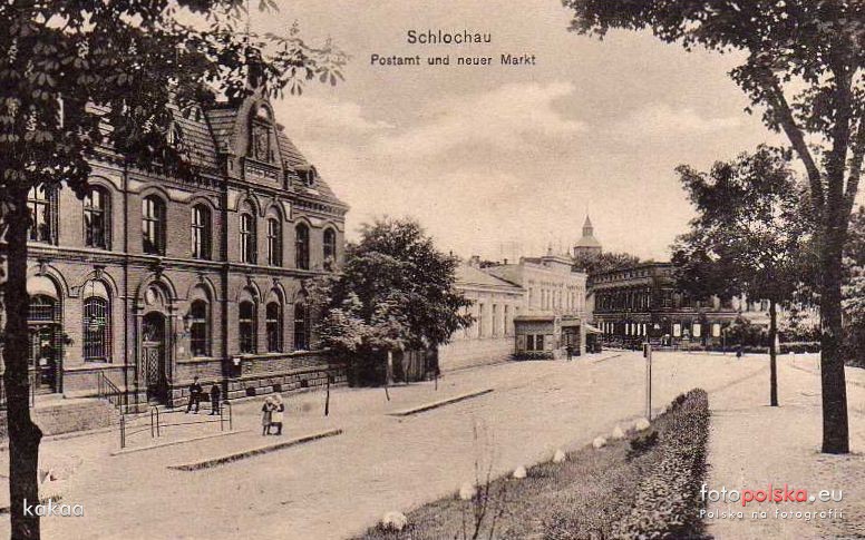 1915 , Człuchów (Schlochau) budynek Poczty tuż za nim biały budynek to nieistniejący Hotel Preussenhof 1915 rok.Skomentuj zdjęcie |