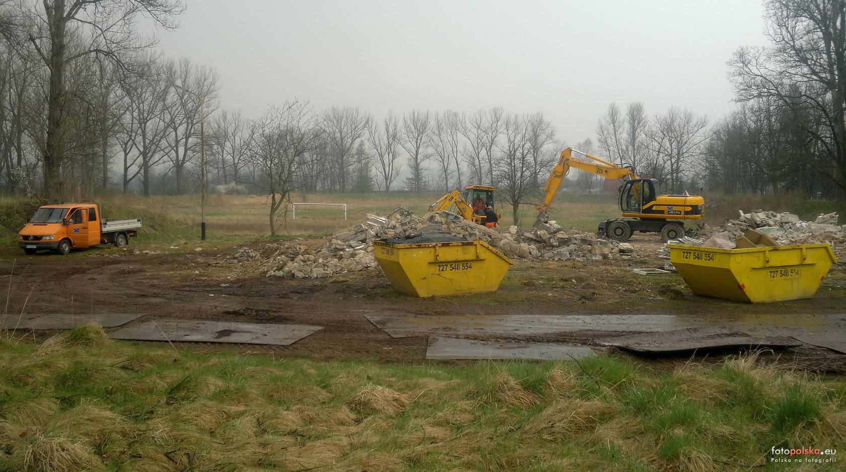 4 kwietnia 2014 , Wyburzona szatnia dawnego stadionu, wkrótce rusza budowa "Dino".Zdjęcie wykonane w deszczu, ale reporterskie.Skomentuj zdjęcie