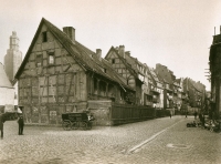 1893 , Oława Białoskórnicza - widok w kierunku południowym. Po lewej wieża kościoła św. Elżbiety. Na pierwszym planie szachulcowy budynek przy ulicy Białoskórniczej nr 31.Skomentuj zdjęcie |