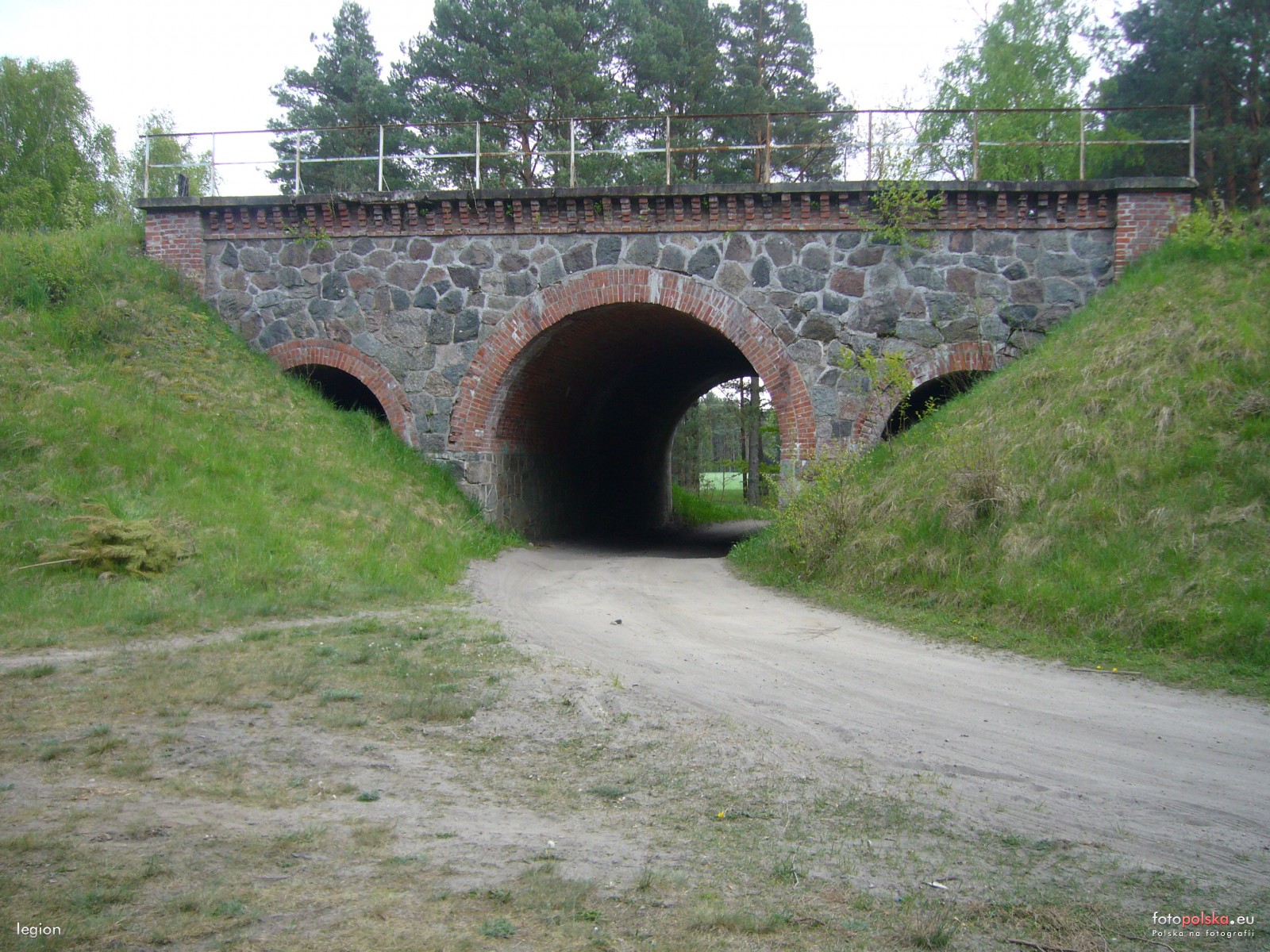 Wiadukt kolejowy nad drogą gruntową (przedłużeniem ulicy Konigorskiej) z Rytla-Zarzecza do Konigórtku i dalej do Zapory. Wyraźnie widać, iż wiadukt został przygotowany pod dwa torowiska. Drugi tor został rozebrany w 1945r. przez żołnierzy radzieckich jako zdobycz wojenna.