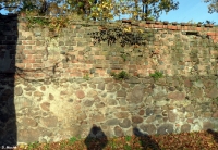 24 października 2013 , Widok od ul. Jagiełły. Fragment muru obronnego w miejscu, gdzie był posadowiony domek morowy zaznaczony na mapce z 1620 r. jako pest-hauschen. Nadal widać ślady miejsc, w których umocowane były belki podpierające domek. Tajemnicze cienie: mój i mojej przewodniczki po Grodkowie.Skomentuj zdjęcie |