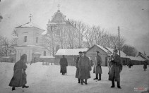 1918 , Niemieccy żołnierze przed kościołem św. Jana Chrzciciela w czasach I wojny światowej. Budynki widoczne po prawej stronie dziś już nie istnieją.Skomentuj zdjęcie |