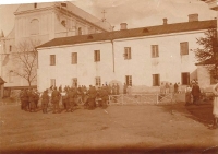 24 kwietnia 1916 , Czasy I wojny światowej. Kościół św. Jana Chrzciciela i dawny klasztor franciszkanów, przekształcony ówcześnie w lazaret polowy. Przed budynkiem widoczna niemiecka orkiestra wojskowa przygrywająca chorym żołnierzom.Skomentuj zdjęcie |