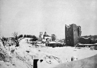 1916 , Czasy I wojny światowej. Zrujnowana cerkiew Świętej Trójcy i zamek z widoczną tu wieżą. Zarówno cerkiew jak i wieża zostaną niedługo całkowicie zniszczone w wyniku ostrzału artyleryjskiego. Fot.Skomentuj zdjęcie |