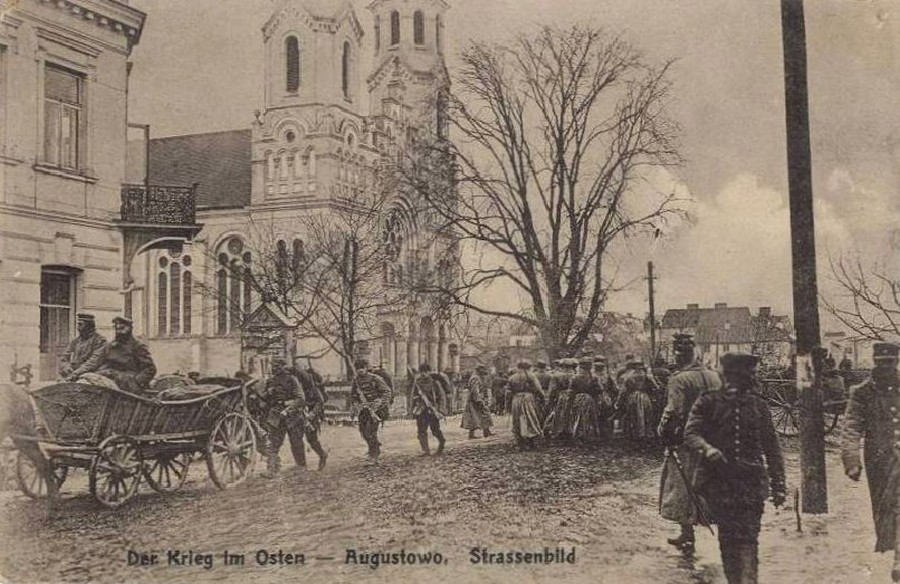 Bazylika Najświętszego Serca Pana Jezusa więcej zdjęć (33) Zbudowano: 1906-1911 Zabytek: 564/25.02.1987 Świątynia zbudowana w latach 1906-1911 w stylu eklektycznym, w miejscu rozebranego klasycystycznego kościoła św. Bartłomieja. Wymiary: długość 50 m, szerokość 20 m, wysokość do sklepienia 15 m, wieże 50 m. 1914-1918 - I wojna światowa - Augustów więcej zdjęć (69) ul. 3 Maja więcej zdjęć (163) Dawniej: Langestrasse, 1 Maja |