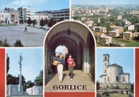 Lata 1978-1980 , Gorlice. "Rynek. Widok ogólny. Pomnik Tysiąclecia Państwa Polskiego. Podcienia kamienicy. Kościół Narodzenia NMP.". |