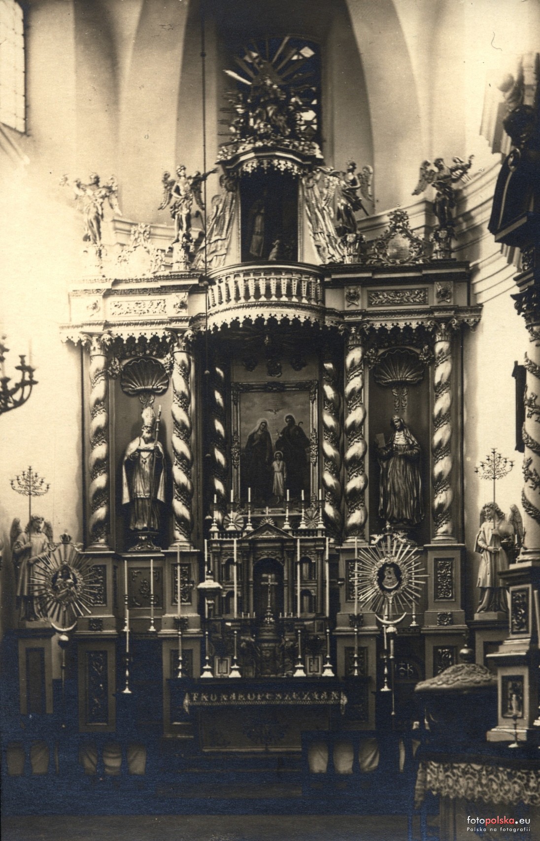 1933 , Kościół pw. św. Mikołaja i św. Otylii to późnobarokowa budowla budowana w l. 1755-84. Ufundowany został przez ks. Józefa Marszałkowskiego przy wsparciu kilku innych osób. Budowla ceglana i otynkowana, trójnawowa z nawami bocznymi otwartymi do głównej dwiema arkadami filarowymi. W głównym ołtarzu znajduje się obraz św. Mikołaja i św. Otylii, patronów parafii. Obok kościoła stoi XIX-wieczna dzwonnica.Skomentuj zdjęcie