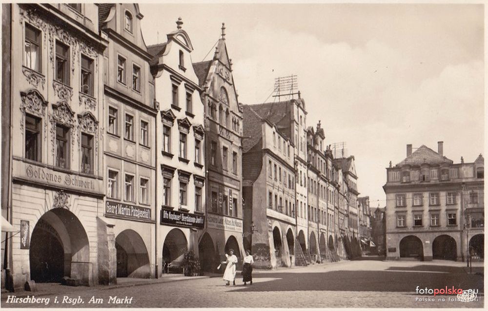 Lata 1910-1920 , Jelenia Góra, rynek. Pierzeja Maślana.Skomentuj zdjęcie