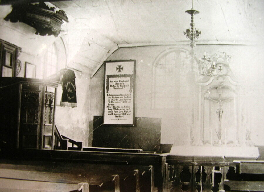 1926 , Ołtarz poewangelickiego kościoła p.w. Świętego Franciszka z Asyżu, widoczna tablica dziękczynna z wojny francusko-pruskiej.Skomentuj zdjęcie |